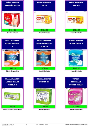 Distribuidora P.R.O. 7 Tel.: 0351-458-8927 E-Mail: distribuidorapro@hotmail.com