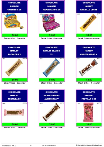 Distribuidora P.R.O. 70 Tel.: 0351-458-8927 E-Mail: distribuidorapro@hotmail.com
