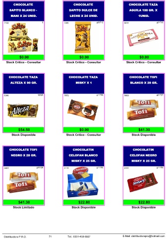 Distribuidora P.R.O. 71 Tel.: 0351-458-8927 E-Mail: distribuidorapro@hotmail.com
