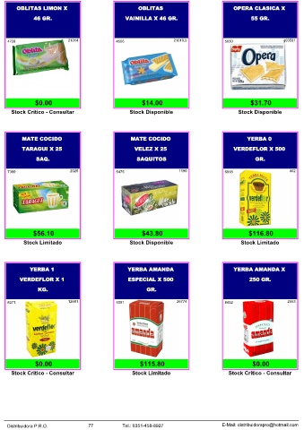 Distribuidora P.R.O. 77 Tel.: 0351-458-8927 E-Mail: distribuidorapro@hotmail.com