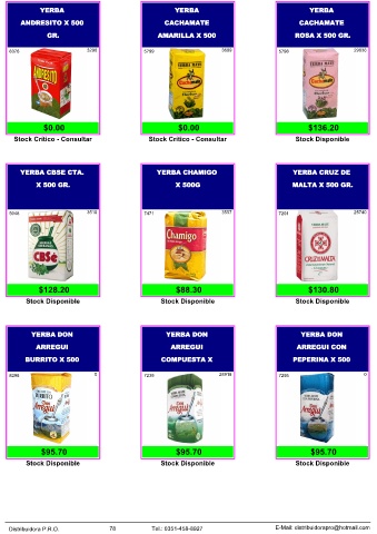 Distribuidora P.R.O. 78 Tel.: 0351-458-8927 E-Mail: distribuidorapro@hotmail.com