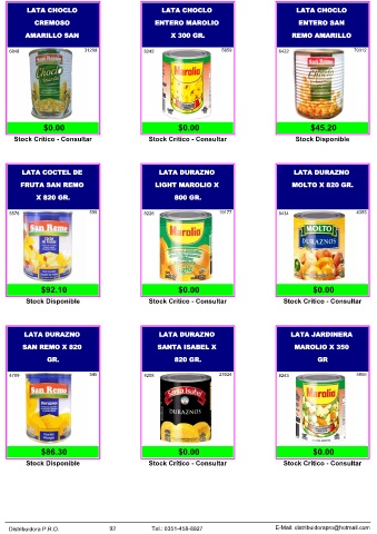 Distribuidora P.R.O. 92 Tel.: 0351-458-8927 E-Mail: distribuidorapro@hotmail.com