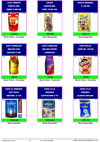 Distribuidora P.R.O. 94 Tel.: 0351-458-8927 E-Mail: distribuidorapro@hotmail.com