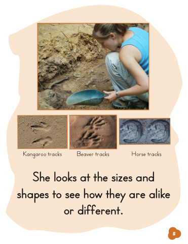 Kangaroo tracks Beaver tracks Horse tracks She looks at the sizes and shapes to see how they are alike or different. 5