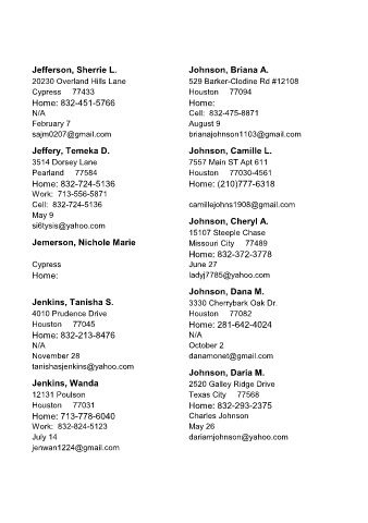 Jenkins, Tanisha S. 3330 Cherrybark Oak Dr.