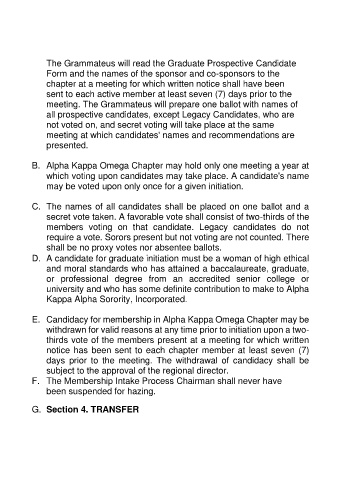E. Candidacy for membership in Alpha Kappa Omega Chapter may be