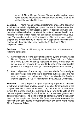 Section 3. Alpha Kappa Omega Chapter may impose the penalty of