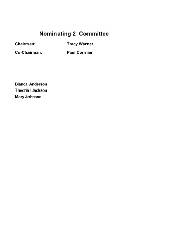 Nominating 2 Committee Chairman: Tracy Warner Co-Chairman: Pam Cormier Bianca Anderson Thedrial Jackson Mary Johnson