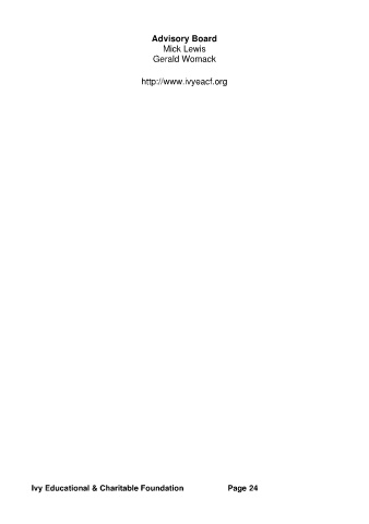 Advisory Board Mick Lewis Gerald Womack http://www.ivyeacf.org Ivy Educational & Charitable Foundation Page 24