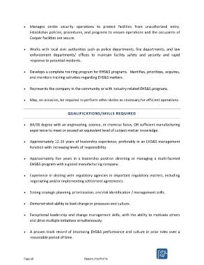 • A proven track record of improving EHS&S performance and culture in prior roles over a