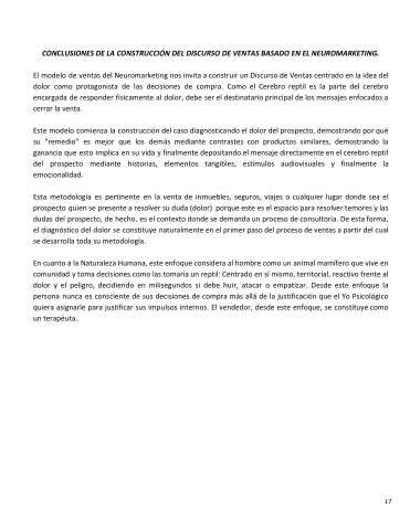 CONCLUSIONES DE LA CONSTRUCCIÓN DEL DISCURSO DE VENTAS BASADO EN EL NEUROMARKETING.