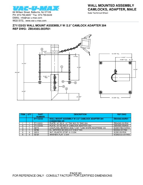 Z71133/03 WALL MOUNT ASSEMBLY W /2.5” CAMLOCK ADAPTER 304 ZB54565.003R01