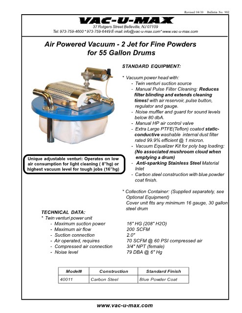 Tel: 973-759-4600 * 973-759-6449 E-mail: info@vac-u-max.com* www.vac-u-max.com