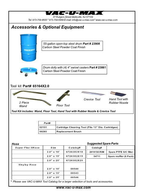 * Please see VAC-U-MAX Tool Catalog for a larger selection of tools and accessories.