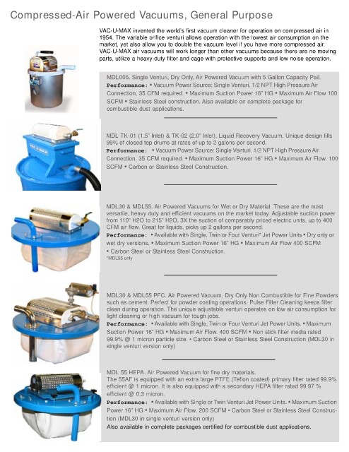 MDL30 & MDL55. Air Powered Vacuums for Wet or Dry Material. These are the most