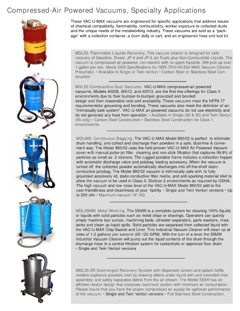 MDL55 Combustible Dust Vacuums. VAC-U-MAX compressed-air powered