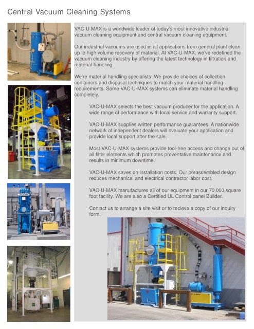 requirements. Some VAC-U-MAX systems can eliminate material handling