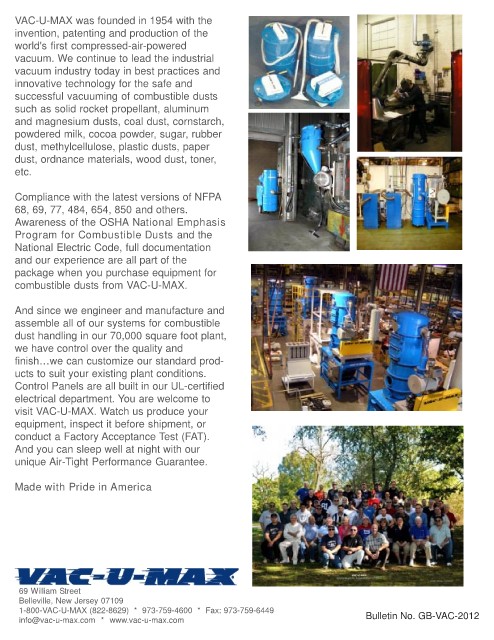 1-800-VAC-U-MAX (822-8629) * 973-759-4600 * Fax: 973-759-6449 Bulletin No. GB-VAC-2012