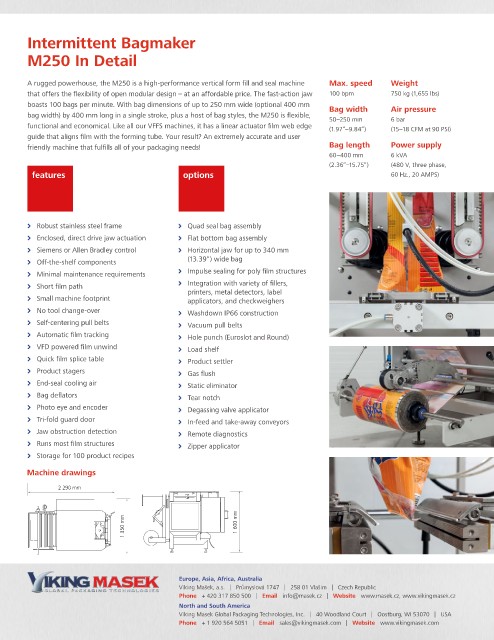 bag width) by 400 mm long in a single stroke, plus a host of bag styles, the M250 is flexible,