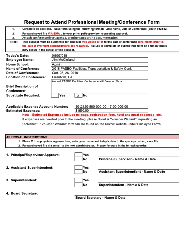 1. Complete all sections. Save form using the following format: Last Name, Date of Conference (Smith 042512).