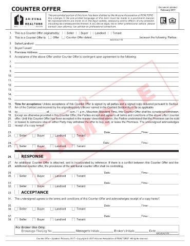 Counter Offer • Updated: February 2017 • Copyright © 2017 Arizona Association of REALTORS . All rights reserved.