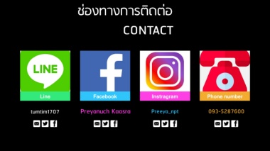 ช่องทางการติดต่อ CONTACT Line Facebook Instragram Phone number tumtim1707 Preyanuch Kaosra Preeya_npt 093-5287600
