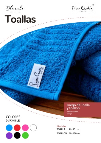 Toallas Juego de Toalla y toallon PIERRE CARDIN 550 grs COLORES DISPONIBLES Medidas TOALLA: 46x90 cm TOALLON: 90x150 cm
