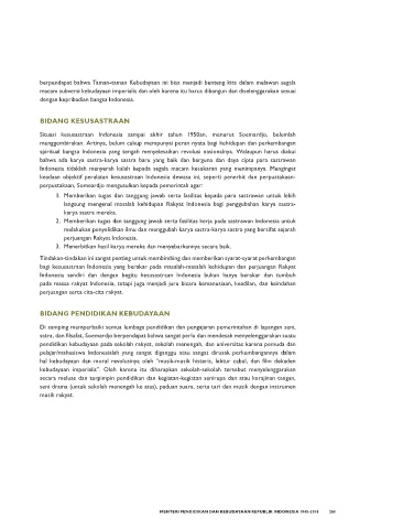 kultural yang sesuai dengan kepentingan penyelesaian Revolusi Agustus dan perkembangan   Indonesia  sendiri dan  dengan  begitu  kesusastraan  Indonesia  bukan  hanya  berakar  dan  tumbuh