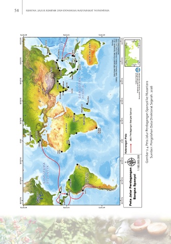 54 REMPAH, JALUR REMPAH DAN DINAMIKA MASYARAKAT NUSANTARA Gambar 2.4 Peta Jalur Perdagangan Spanyol ke Nusantara Sumber: Pengolahan Data Direktorat Sejarah. 2016