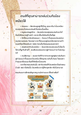 ช่วยให้คุณสามารถใช้การเล่นในการกระตุ้นให้น้องเหมียวได้ฝึกฝนต่างๆ • เกมส์ตะครุบ – ลองเอาท่อที่ทำ จากกระดาษลูกฟูกมาเล่นกับเขา
