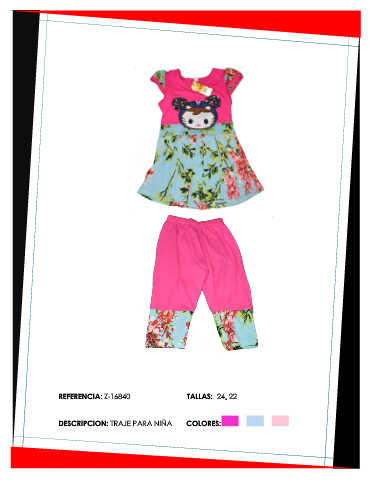REFERENCIA: Z-16840 TALLAS: 24, 22 DESCRIPCION: TRAJE PARA NIÑA COLORES:
