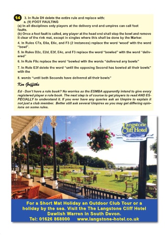 5. In Rules D2c, E2d, E3f, E4c, and F3 replace the word “bowled” with the word “deliv-