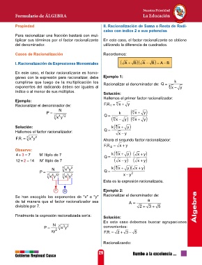 Formulario de ÁLGEBRA La Educación DIRECCION REGIONAL DE EDUCACION