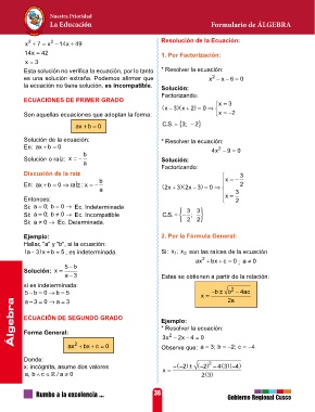 DIRECCION REGIONAL DE EDUCACION La Educación Formulario de ÁLGEBRA