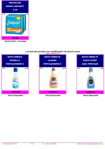 Distribuidora P.R.O. 142 Tel.: 0351-458-8927 E-Mail: distribuidorapro@hotmail.com