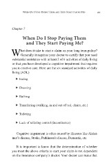 When Do I Stop Paying Them and They Start Paying Me? 41 Chapter 7 When Do I Stop Paying Them and They Start Paying Me? hat does it take to start a claim on your long term policy? WGenerally it requires your doctor to certify that you need substantial assistance with at least 2 of 6 activities of daily living or that you have developed a cognitive impairment that requires you to receive care. Here are the six standard activities of daily living (ADL) f Eating f Dressing f Bathing f Transferring (walking, in and out of bed, chairs, etc.) f Toileting f Lack of toileting control (incontinence) Cognitive impairment is often caused by illnesses like Alzhei- mer’s disease, Stroke, Parkinson’s disease, Dementia, etc. It is important to know that the determination of whether you meet the above criteria to start your claim is not dependent on the insurance company’s doctor. Your doctor can make that