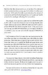 46 Growing Old Without a Plan for Long Term Care is not for Sissies limit less than that amount and/or you do not have 5% compound infation protection then you may qualify for dollar for dollar asset protection. With dollar for dollar asset protection, the amount of assets protected from Medicaid spend down will equal your beneft amount when you begin collecting from your policy. For example, if you purchase a plan that has a $200,000 beneft in 2011 and 15 years later when you start receiving benefts your beneft limit has increased to $400,000, then you will be able to protect $400,000 from Medicaid spend down. If the cost of your care uses up your $400,000 beneft then you can apply to Medicaid to continue to pay for your care and still keep up to $400,000 of your assets. Only Indiana and New York state offer total asset protection, the rest of the states that have Partnership plans offer dollar for dollar protection. Most states have reciprocal agreements with the other states that allow you to qualify for Medicaid spend down asset protection on a dollar for dollar basis if you receive your care in a state other than the one you purchased your Partnership qualifed plan in. However, there are some states that do not have Partnership plans and some do not have reciprocal agreements with other states so make sure you consider this if you intend to move to another state when you retire. One important thing to know is that while the Indiana Partnership program protects assets from Medicaid spend down requirements, it does not protect income. Medicaid can require you to use part or all of your income to pay for your care before they begin paying. For more information on the Indiana Partnership for long term care, go to their website at: www.in.gov/iltcp.