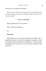 What Do I Do Now? 63 to base the way I operate my business: “Each of you should usE whatEvEr gift you havE rEcEivEd to sErvE othErs, as faithful stEwards of god’s gracE in its various forms.” 1 Peter 4:10 (NIV) Pretty good advice, don’t you think? May we all serve with grace, Jim Summary: Take action now to help secure your fnancial future and to protect those you love from the devastating consequences to their emotional, physical and fnancial well being as a result of a need for long term care. Share what you have learned (and this book) with others.