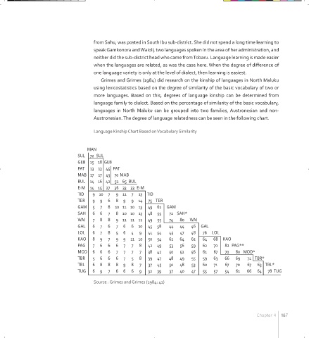 Grimes and Grimes (1984) did research on the kinship of languages in North Maluku