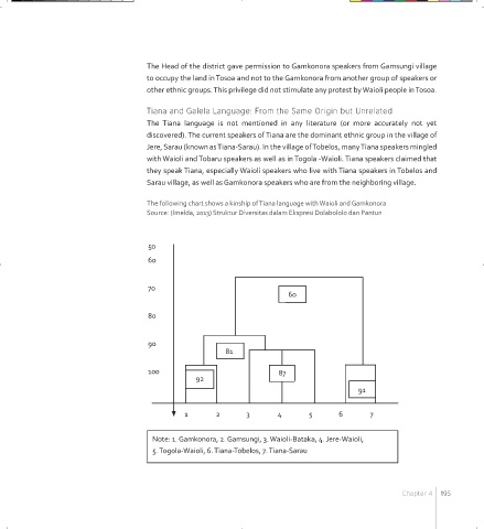 The following chart shows a kinship of Tiana language with Waioli and Gamkonora
