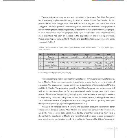 Table 1. The population of Papua, West Papua, Maluku, North Maluku and NTT in 1971, 1980, 1990,