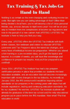 Since 2014, UFSTSG Tax Institute has had a tax preparer