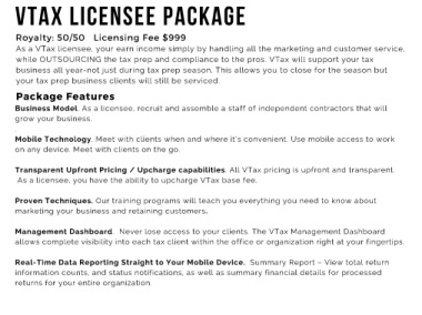 As a VTax licensee, your earn income simply by handling all the marketing and customer service,