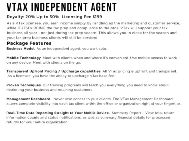 As a VTax licensee, you earn income simply by handling all the marketing and customer service,