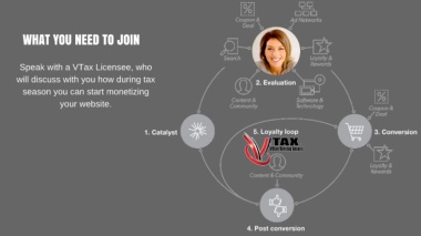WHAT YOU NEED TO JOIN Speak with a VTax Licensee, who will discuss with you how during tax season you can start monetizing your website.