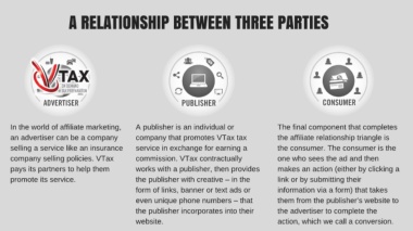 an advertiser can be a company company that promotes VTax tax the affiliate relationship triangle is