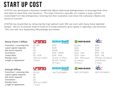 people. We try to analyze what it costS us to bring someone up to speed in opening a tax business.