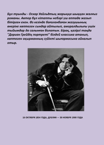 Бұл туынды - Оскар Уайльдтың жарыққа шыққан жалғыз