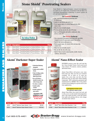Stone ShieldTM Penetrating Sealer for Polished Surfaces, 1 Quart Stone ShieldTM Penetrating Sealer for Polished Surfaces, 1 Gallon Stone ShieldTM Penetrating Sealer for Porous Surfaces, 1 Quart Stone ShieldTM Penetrating Sealer for Porous Surfaces, 1 Gallon