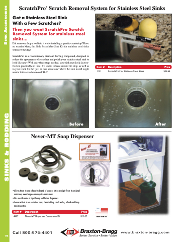 ScratchPro is a revolutionary diamond buffing compound, designed to reduce the appearance of scratches and polish your stainless steel sink to look like new! With only three steps needed, your sink may look factory- fresh in practically no time! It’s useful to have around the shop, as well as in your truck for the ‘just in case situations’ where the sink install might need a little scratch removal TLC.